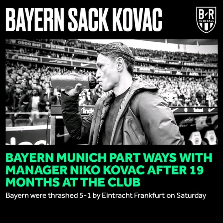 Kovac’s departure comes just over 24 hours, after Bayern were thrashed 5-1 by his former club, Eintracht Frankfurt.